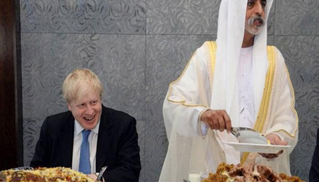 Thatcher’ın ölümü sonrası 5 günlük ticari gezisini yarıda bırakan Johnson, dönüş öncesi kendisine ikram edilen deve etinin tadına baktı. Johnson, devenin tadını oldukça egzotik bulduğunu ifade ederken, yemek masasında bulunan konuklardan biri, “Boris deveyi gördüğünde muhteşem olduğunu söyledi ve hemen telefonunu çıkararak fotoğrafını çekti” dedi. Jonhson’ın yardımcılarından biri ise açıklamasında, “Boris ve Şeyh El Nahyan karşılıklı olarak kültürel ve ticari temaslarda bulundular. Şeyh Nahyan Boris’e yerel ve geleneksel bir sofra hazırladı” dedi.